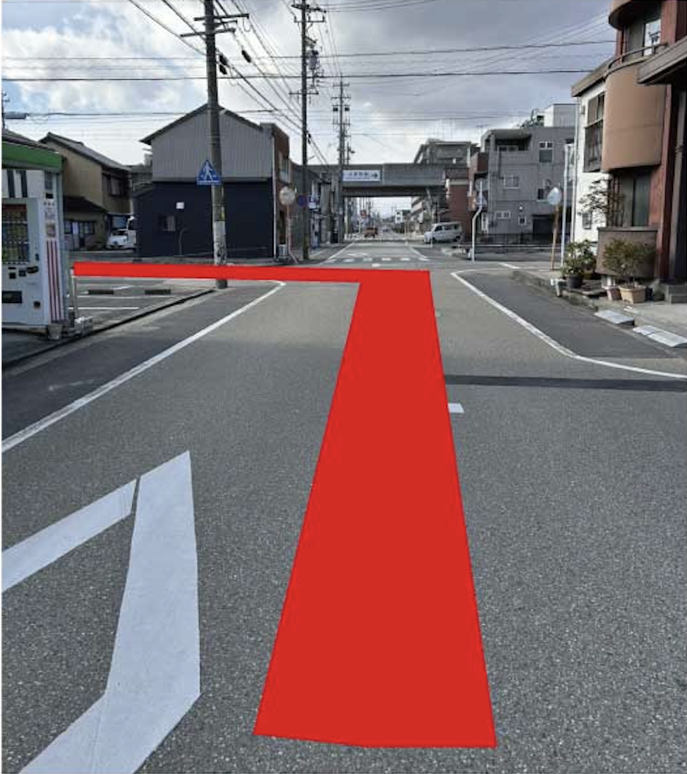 ここを左折
