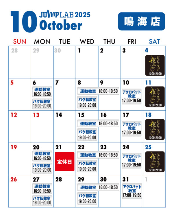 JUMP LAB 鳴海店の2025年10月度スケジュールです!