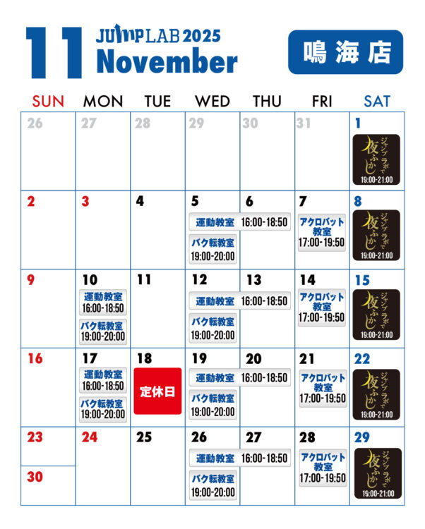 JUMP LAB 鳴海店の2025年11月度スケジュールです!