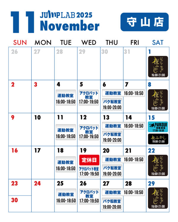 JUMP LAB守山店の2025年11月度スケジュールです!