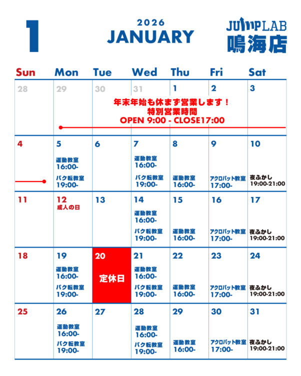 JUMP LAB 鳴海店の2026年1月度スケジュールです!