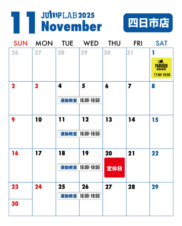 JUMP LAB 四日市店の2025年11月度スケジュールです!