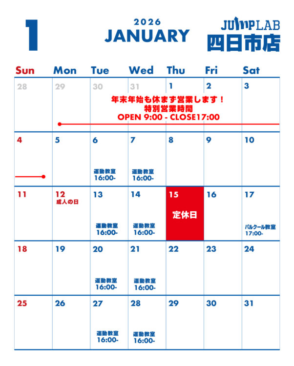 JUMP LAB 四日市店の2026年1月度スケジュールです!