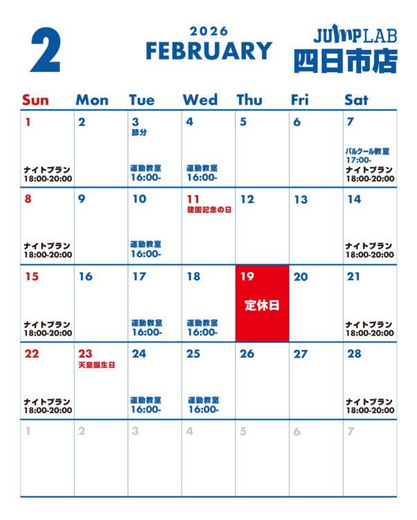 JUMP LAB 四日市店の2026年2月度スケジュールです!